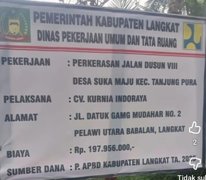 Dan untuk pelaksanaan Proyek hanya sekedar saja, asal sudah nampak sudah terlaksana, Hal seperti ini yang telah sengaja Merugikan keuangan Negara dengan menggelontorkan melalui dana APBD tahun 2025 kabupaten Langkat.