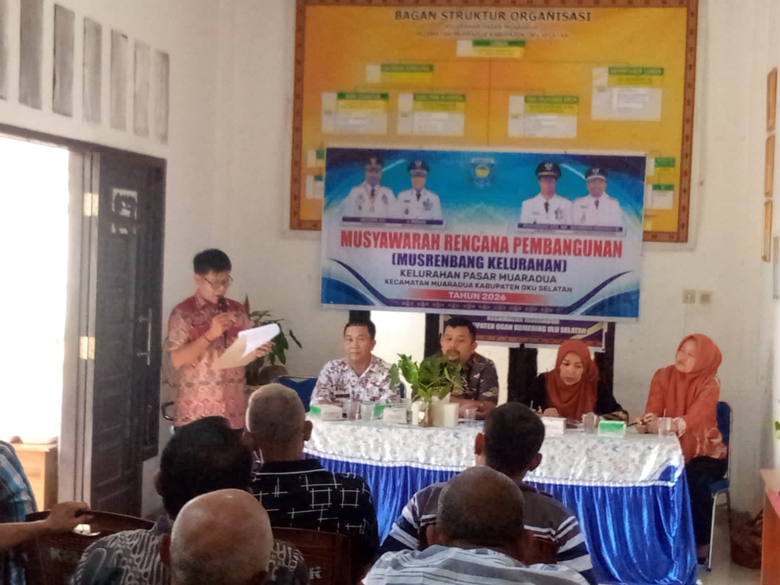 Pemerintah Kelurahan Pasar Muaradua, Kecamatan Muaradua, Kabupaten Ogan Komering Ulu Selatan, menggelar Musyawarah Perencanaan Pembangunan (Musrenbang) Tahun 2026 sebagai forum strategis untuk menyerap aspirasi dan kebutuhan masyarakat.