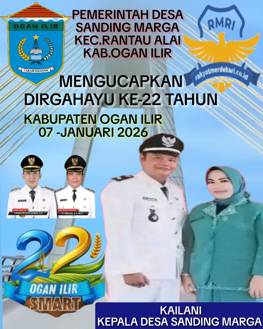 Kepala desa Sanding Marga Kailani Beserta, Jajaran Perangkat desa Mengucapkan Selamat Hari Ulang Tahun Kabupaten Ogan Ilir Ke-22 Tahun 2026
