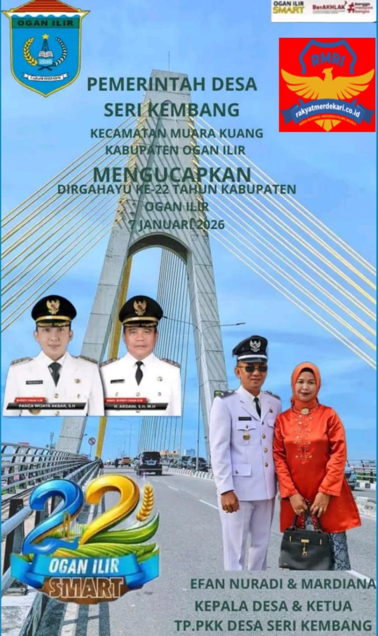 Pemerintah Desa Serikembang Mengucapkan selamat Hari Ulang Tahun Kabupaten Ogan Ilir yang Ke-22 Tahun jatuh pada hari Rabu tanggal 07 Januari -2026