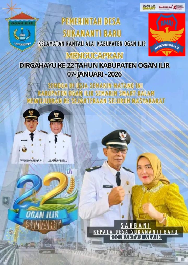 Kepala desa Sukananti Baru, beserta jajaran Perangkat desa Mengucapkan Dirgahayu Ke-22 Tahun Kabupaten Ogan Ilir jatuh pada hari rabu tanggal 07 Januari.2026