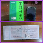 – 1 kotak handphone merk INFINIX HOT 50i warna ungu beserta unit handphone yang sama