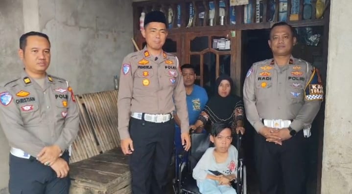 jajaran Satuan Lalu Lintas (Satlantas) Polres Oku Selatan berikan bantuan kursi roda kepada seorang warga penyandang disabilitas, Senin (09/03/2026).Bantuan tersebut diberikan kepada Deni Andri Irawansyah (25), warga Dusun I, Desa Gunung Terang, Kecamatan Buay Sandang Aji, Kabupaten Oku Selatan.