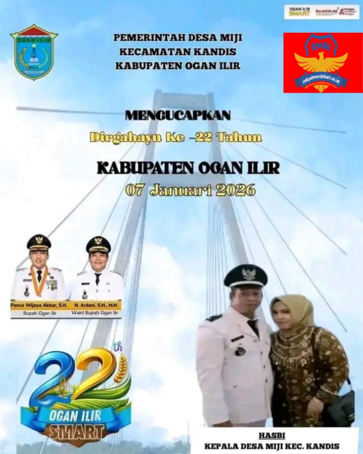 Pemerintah desa Miji Kecamatan Kandis Mengucapkan Selamat Hari Jadi Kabupaten Ogan Ilir yang ke -22 tahun jatuh pada tanggal 07 Januari 2026