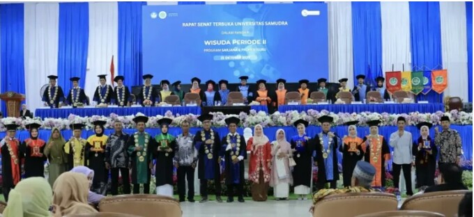 Sebanyak 677 lulusan dari lima Fakultas Universitas Samudra (Unsam) dikukuhkan oleh Rektor Prof. Dr. Ir. Hamdani, M.T pada sidang Terbuka Senat Universitas dalam rangka Upacara Wisuda Program Sarjana Periode II dan Profesi Tahun 2025, yang dibuka oleh Ketua Senat Dr. Ir. M. Amin, S.T., M.T. kegiatan berlangsung di Aula Gedung Multiguna Unsam. Selasa 21 Oktober 2025