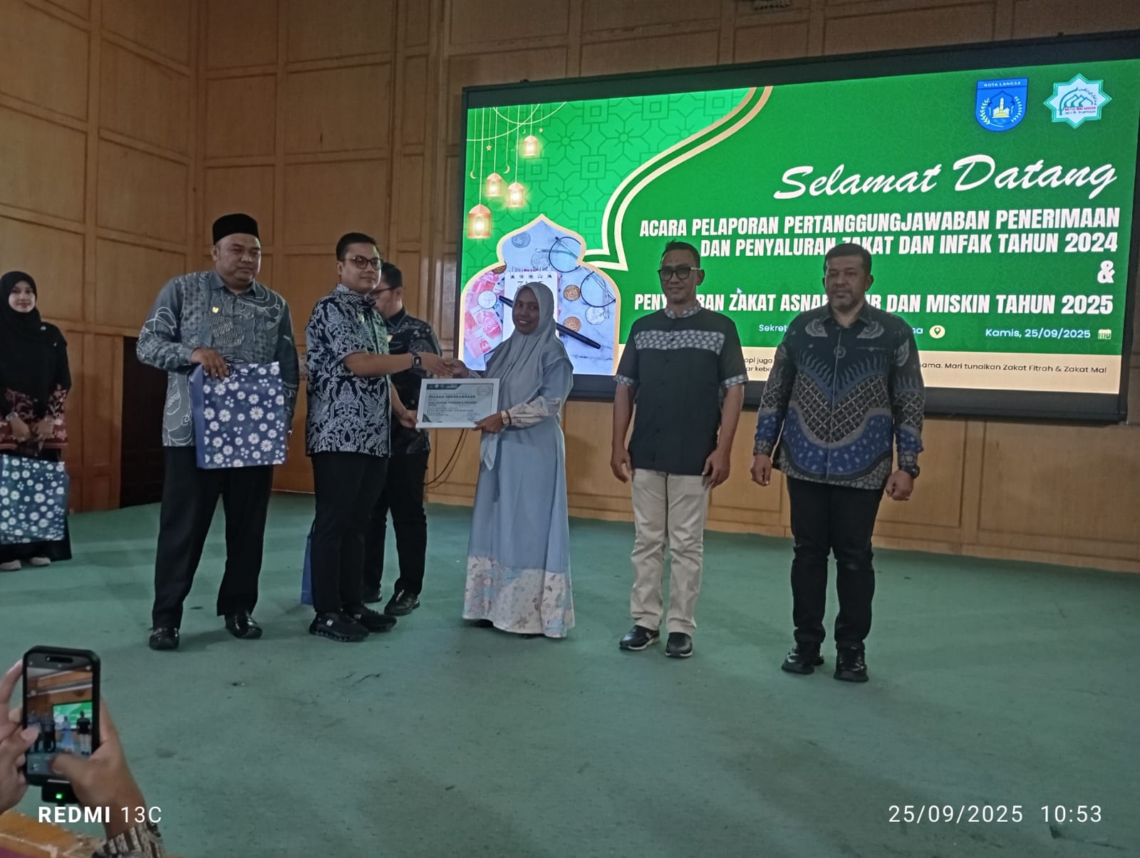 Baitul Mal Kota Langsa menyalurkan Zakat dan Infaknya senilai Rp6,5 miliar untuk 7.700 penerima senif fakir dan miskin di Aula Cakra Donya Kota Langsa, Kamis 23 September 2025.